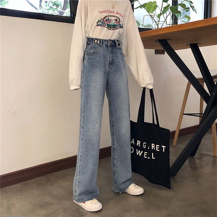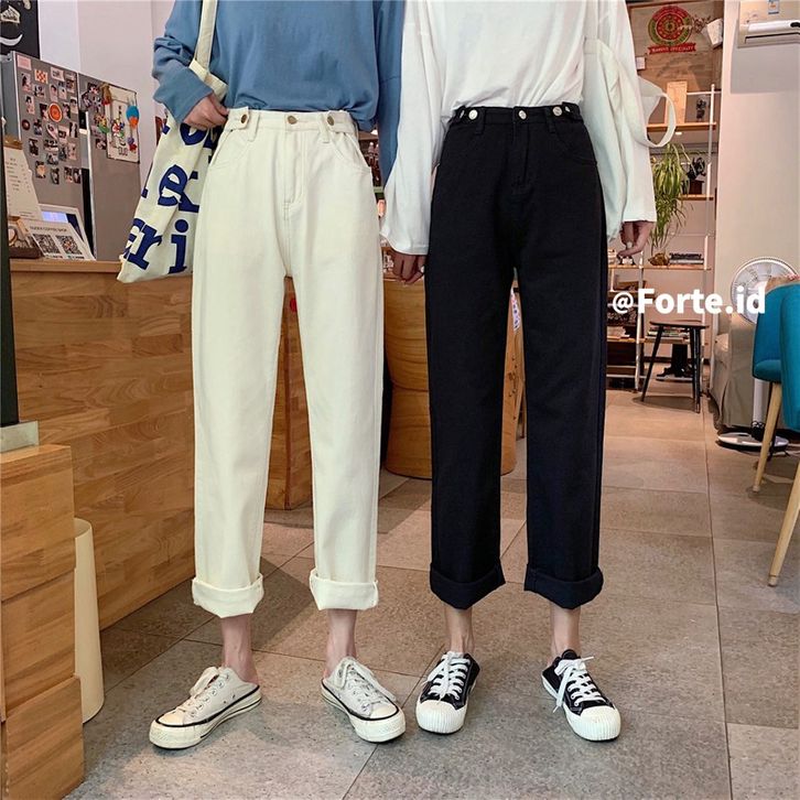 Jeans Stylsih Wanita Kekinian Celana High Waist Harem Pants Loose Korean Style Jins Celana Panjang Wanita Polos Stylish