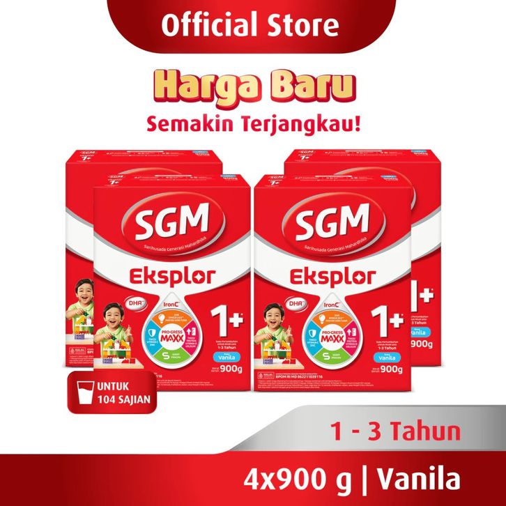 SGM Eksplor 1+ dengan IronC Susu Pertumbuhan Rasa Vanilla 900GR x 4