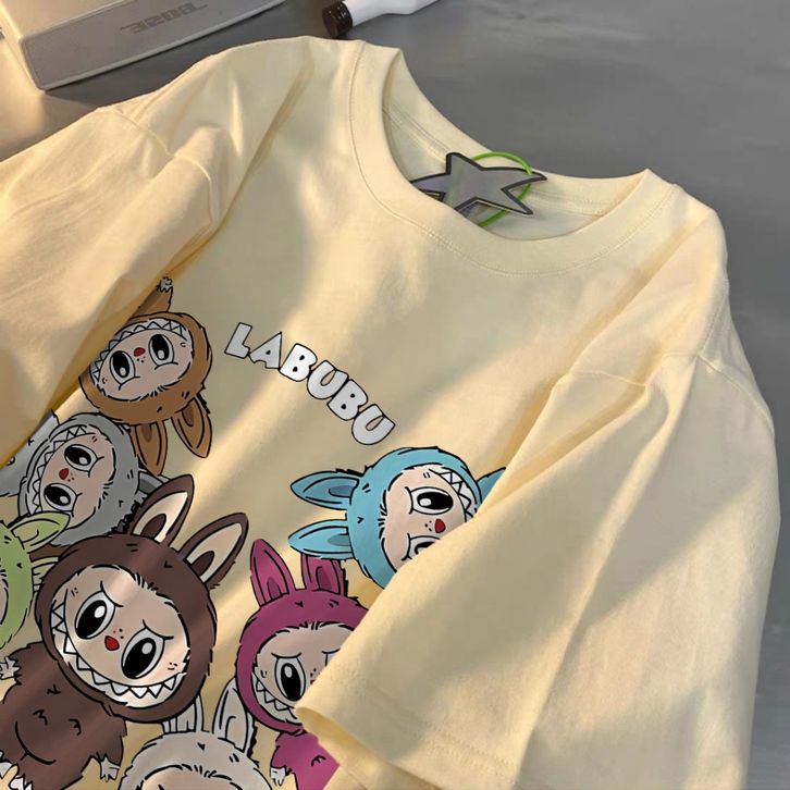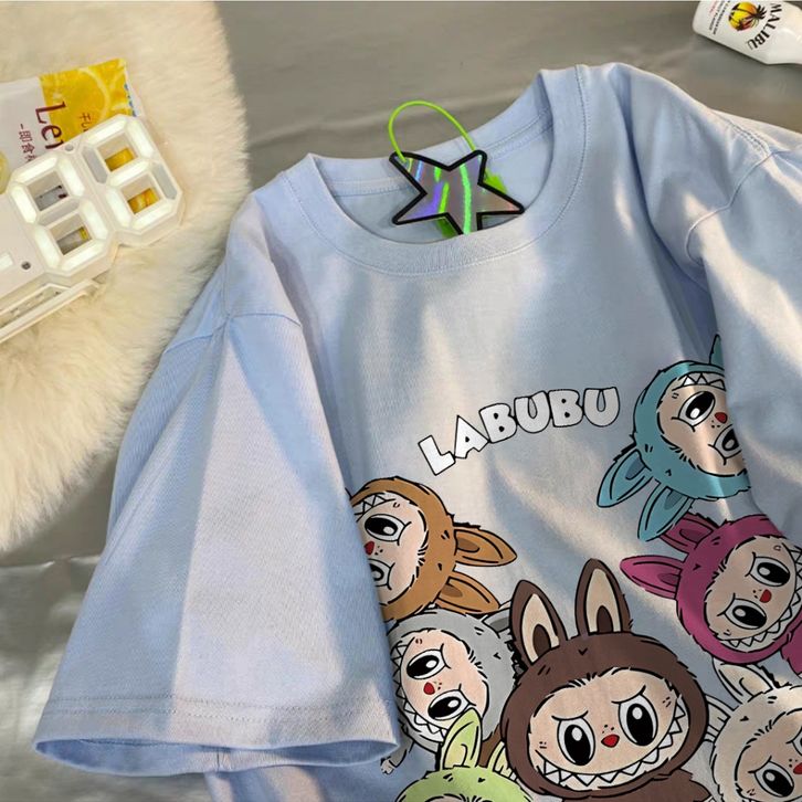Baju Labubu Outift Kaos Wanita Korean Style Lengan Pendek Oversize Atasan Wanita Kekinian Bahan Cutton Premium Stylish