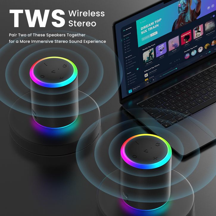 Orashare BS15 Portable Speaker Bluetooth With RGB Light 10W TWS Stereo Wireless Outdoor Speaker Waterproof IPX6
