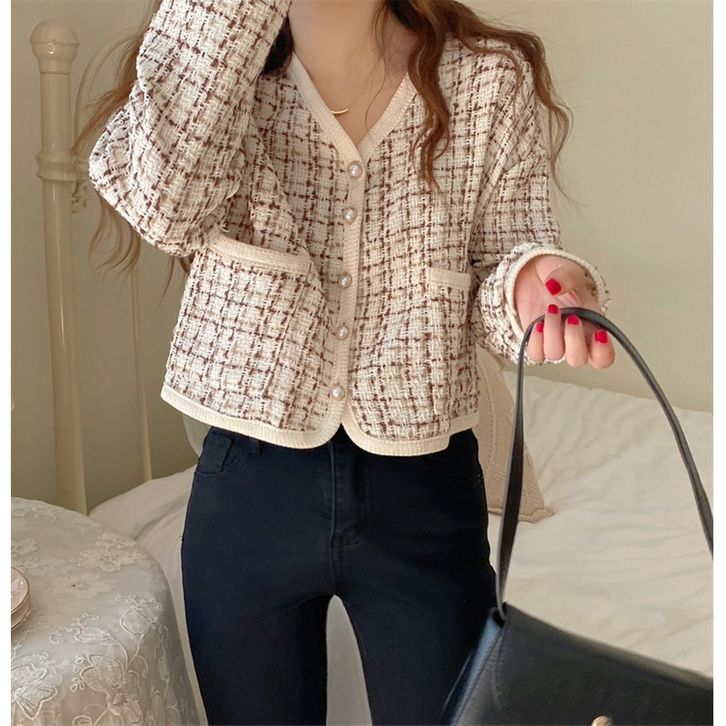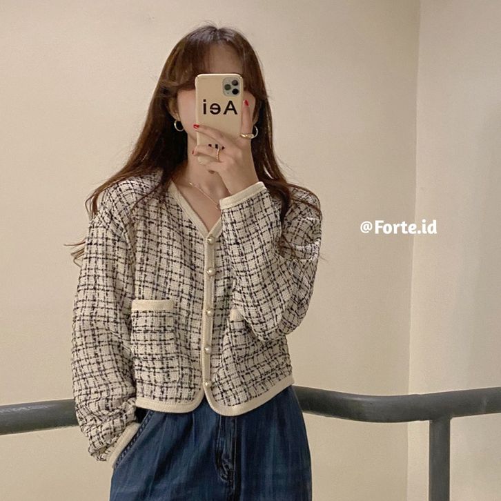 Jaket Wanita Keren Korean Style Outer Crop Jacket Lengan Panjang Outwear Wanita Kekinian Atasan Wanita Crop Top Stylish