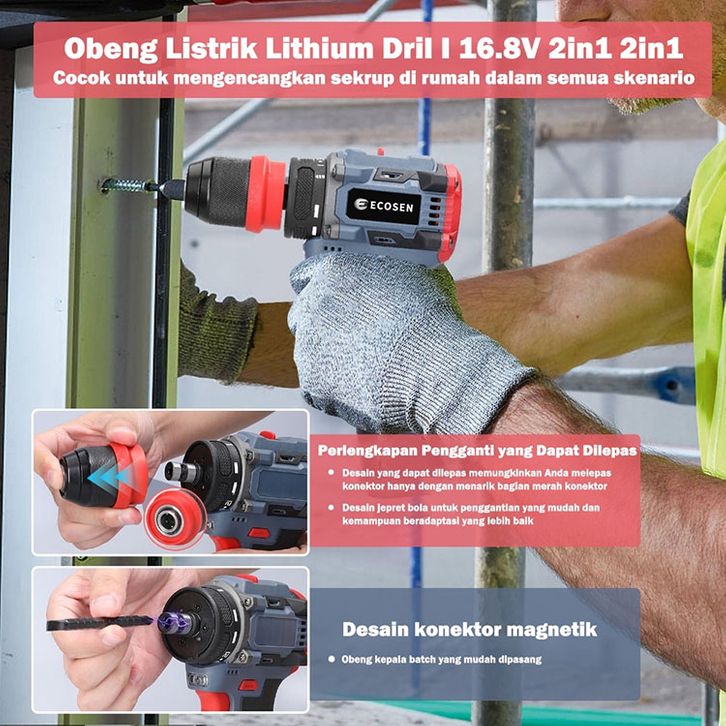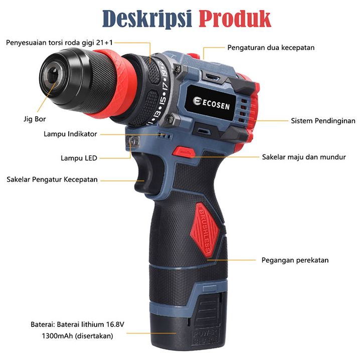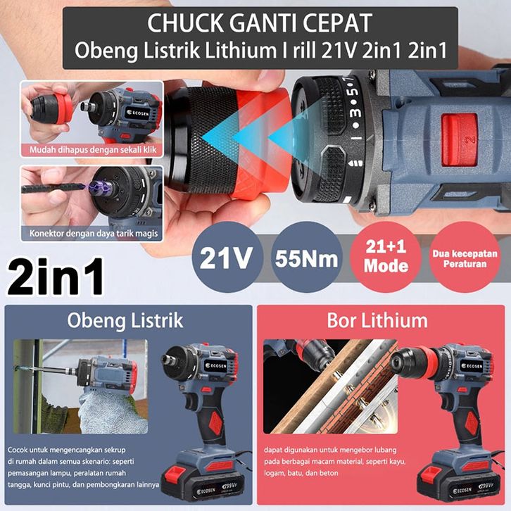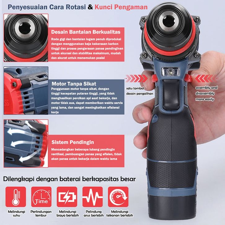 DICKS 299VF Mesin Bor Baterai 13mm Impact Cordless 10mm 3 Mode-Bor Impact Obeng Bor Tembok Besi Kayu Bisa Bolak-Balik