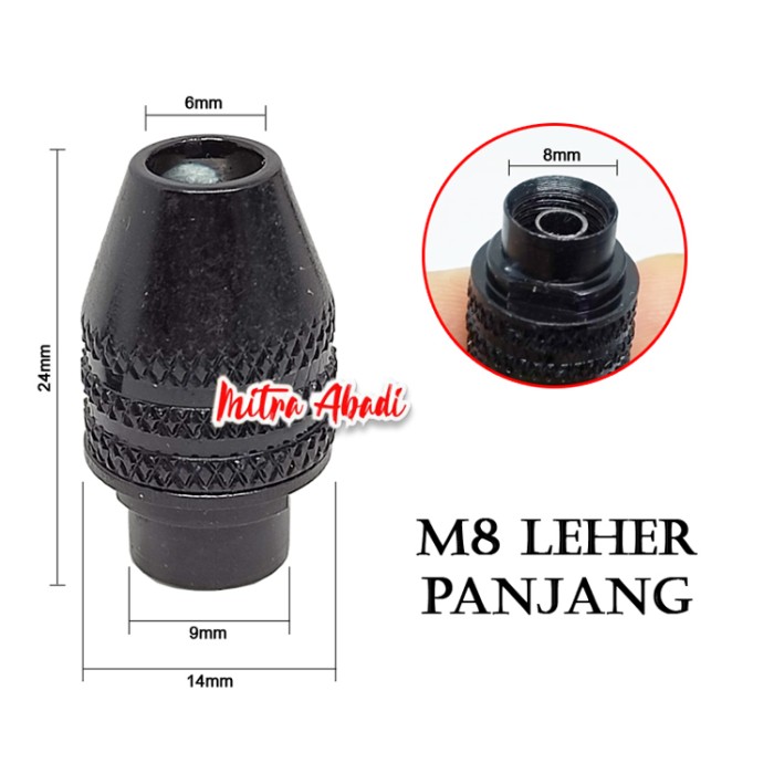 THREE JAWS MINI DRILL CHUCK SCREW M7 / M8 - KEPALA BOR KECIL MINI - M7 LEHER PENDEK
