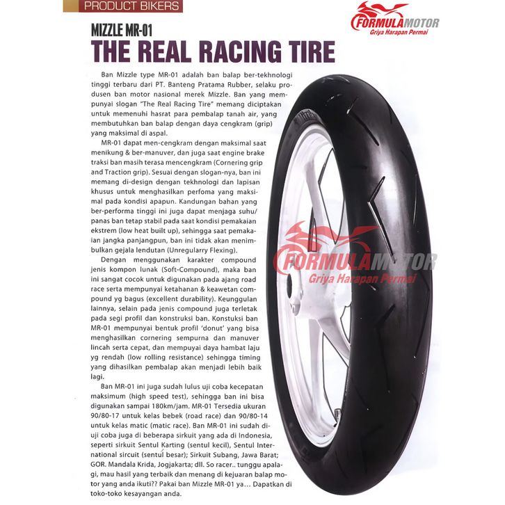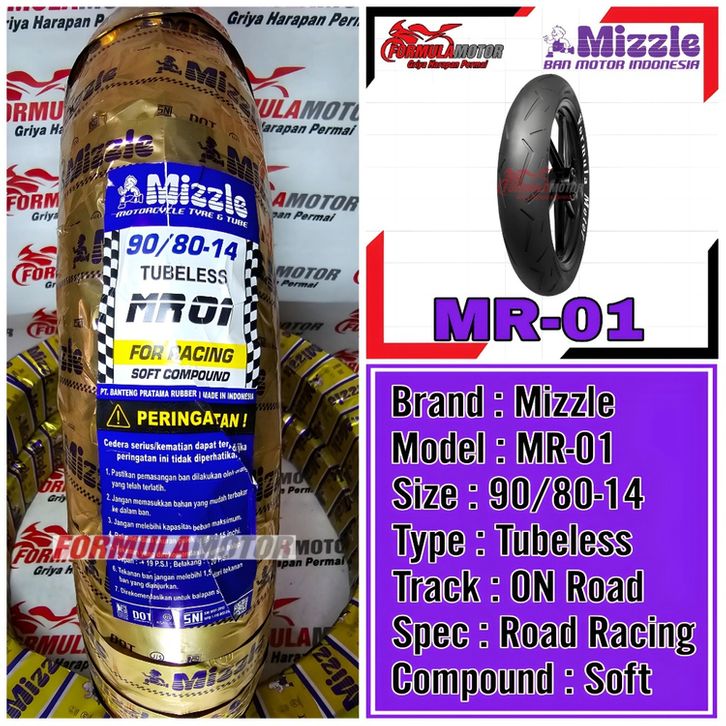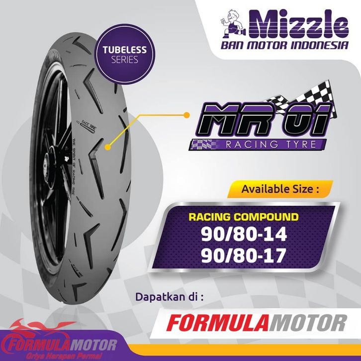 Mizzle MR01 Uk 90/80-14 Tubeless Soft Compund - Ban Motor Matic Beat Mio Vario Kompetisi Balap Ring 14Tubles