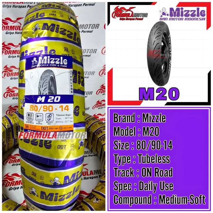 Mizzle M20 Uk 80/90-14 Tubeless - Ban Luar Motor Matic Beat MIo Vario Scoopy Spacy Spin XRide Ring 14 Tubles