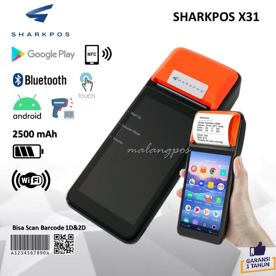 Smart POS Mobile Sharkpos X31 X 31 Android Thermal Scanner Printer Thermal Bluetooth 58mm