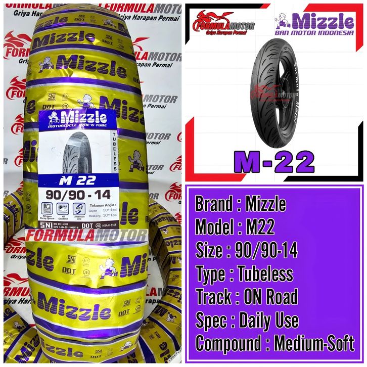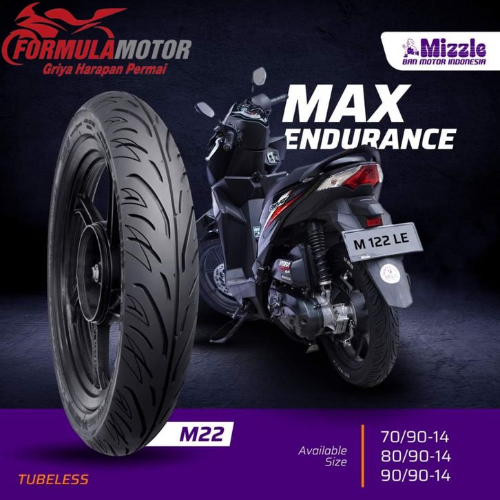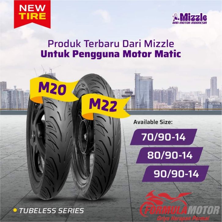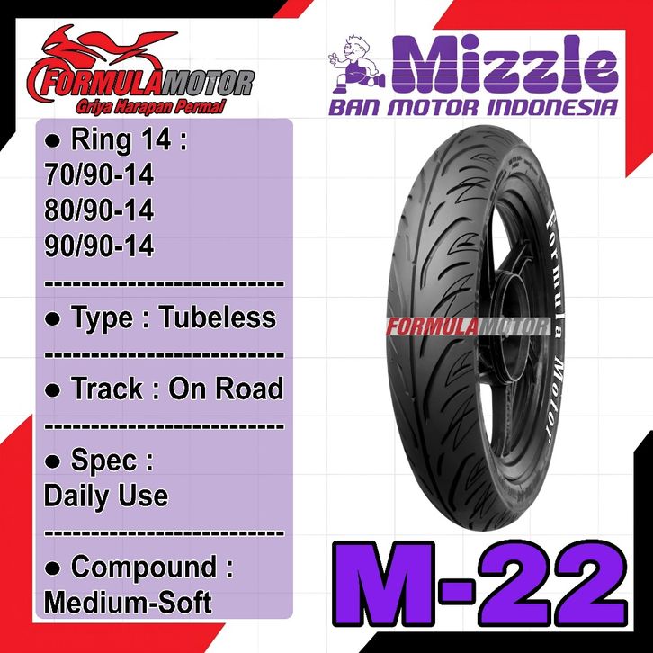 Mizzle M22 Uk 90/90-14 Tubeless - Ban Luar Motor Matic Beat MIo Vario Scoopy Spacy Spin XRide Ring 14 Tubles
