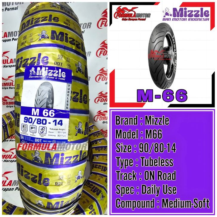 Mizzle M66 Uk 90/80-14 Tubeless - Ban Luar Motor Matic Beat MIo Vario Scoopy Spacy Spin XRide Ring 14 Tubles