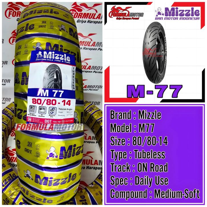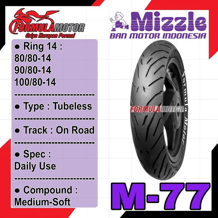 Mizzle M77 Uk 80/80-14 Tubeless - Ban Luar Motor Matic Beat MIo Vario Scoopy Spacy Spin XRide Ring 14 Tubles