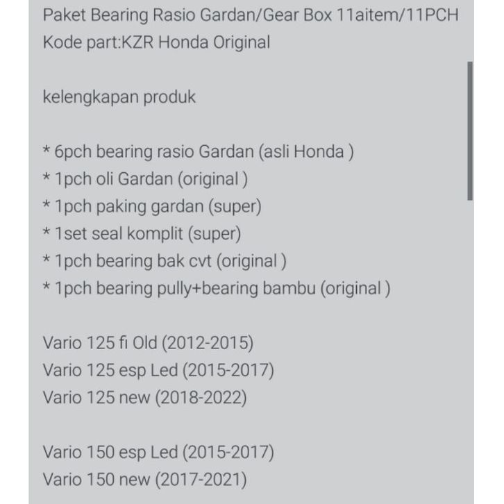Bearing Rasio Gardan 11aitem/11PC KZR Honda Vario 125 fi old Vario 125 esp Led Vario 125 New, Vario150 esp LED Vario 1