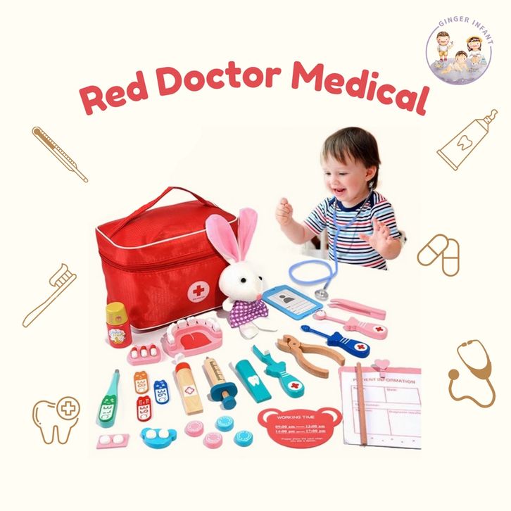 RED DOCTOR MEDICAL WOODEN TOYS MAINAN DOKTER DOKTERAN ANAK MURAH BY GINGERINFANT ORIGINAL READY STOCK
