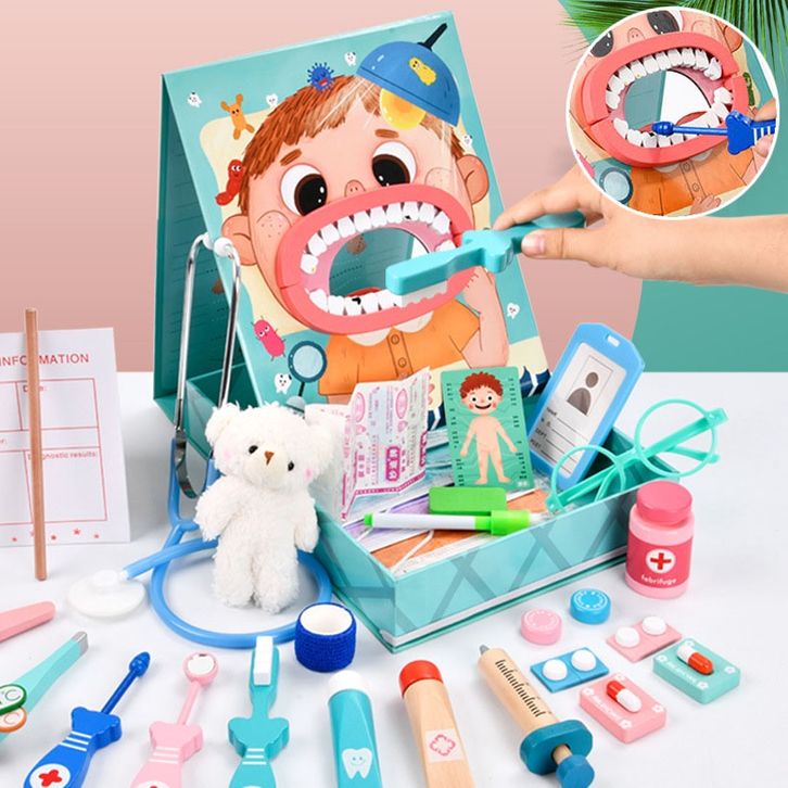 RHAAST DENTIST TOYS MAINAN DOCTOR ANAK MAINAN KAYU ANAK BY GINGER INFANTINO PERALATAN PERAWATAN KESEHATAN BONEKA PAPAN