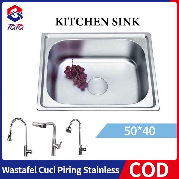 TQTQ Bak Cuci Piring Wastafel Cuci Piring 50Cmx40Cm Dan Kran Flexible Stainless