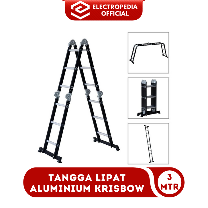 [Star]Tangga Lipat Aluminium Steel Krisbow 3 mtr 4x3 Step Hitam Multifunction Household Ladder