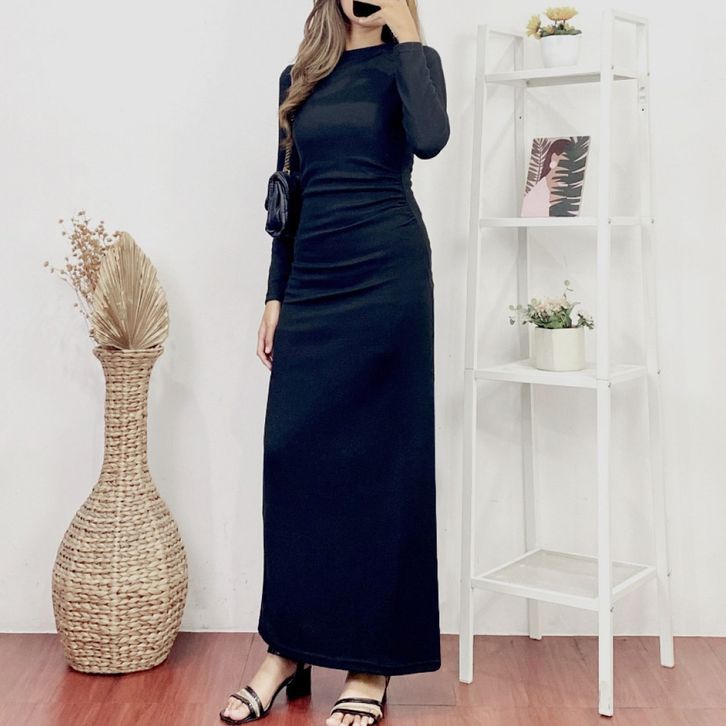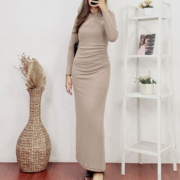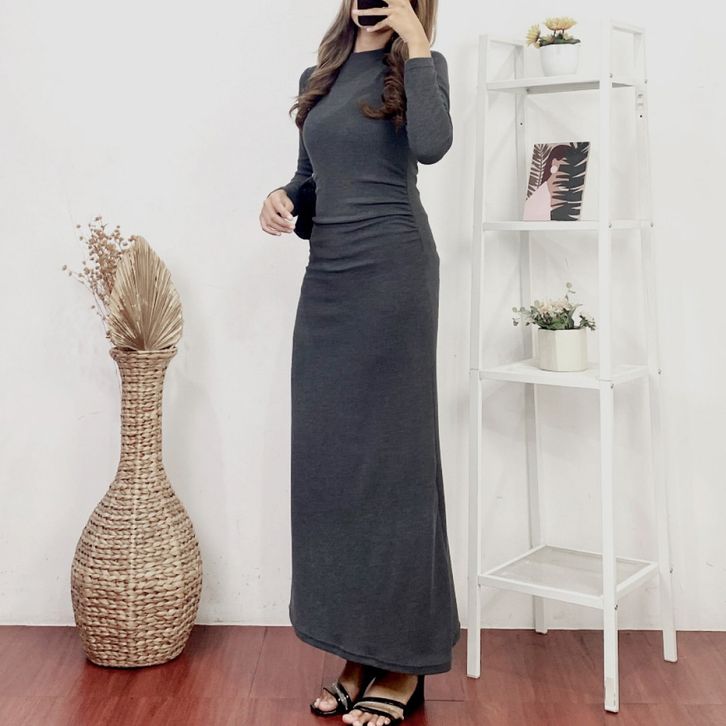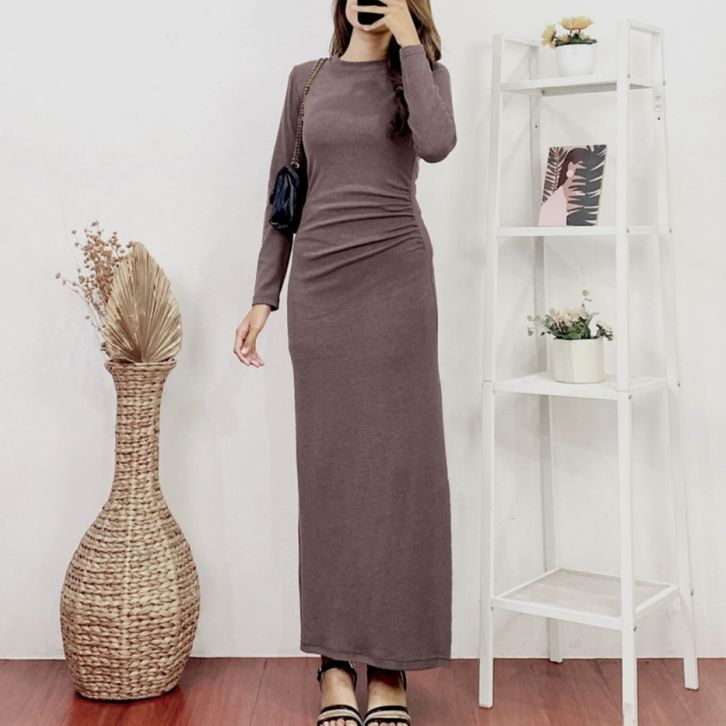 Dress Knit Wanita Knit Long Dress Terusan Wanita Dress Casual Wanita Korean Style Maxi Dress Bahan Rib Knit Premium