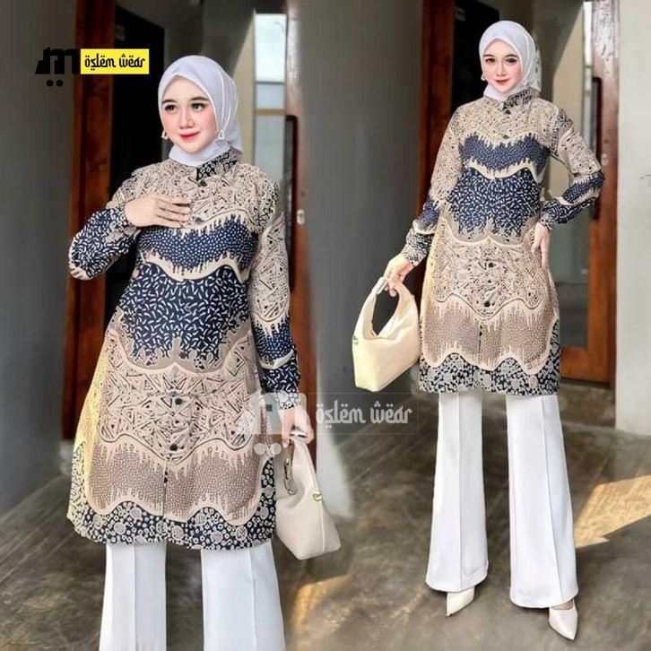Atasan Batik Tunik Wanita Modern Baju Batik Wanita Kerja Seragam Kantor Style Kekinian By Moslem Wear