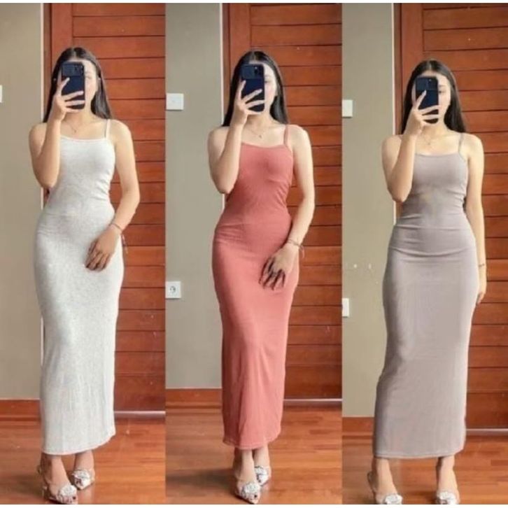 Dress Panjang Press Body Long Dress Maxi Bodycon Long Dress Maxi Wanita Bodycon Dress Casual Bahan Spandek Sutra Premium