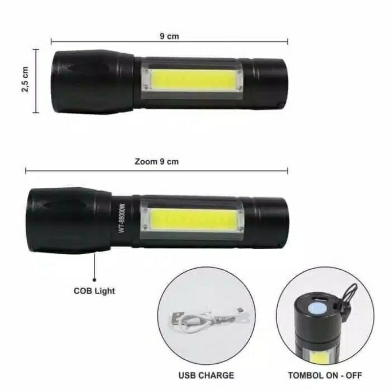 SENTER CAS ANTI AIR MINI PORTABLE SENTER LED COB SENTER SATPAM POLISI SECURITY LAMPU EMERGENCY