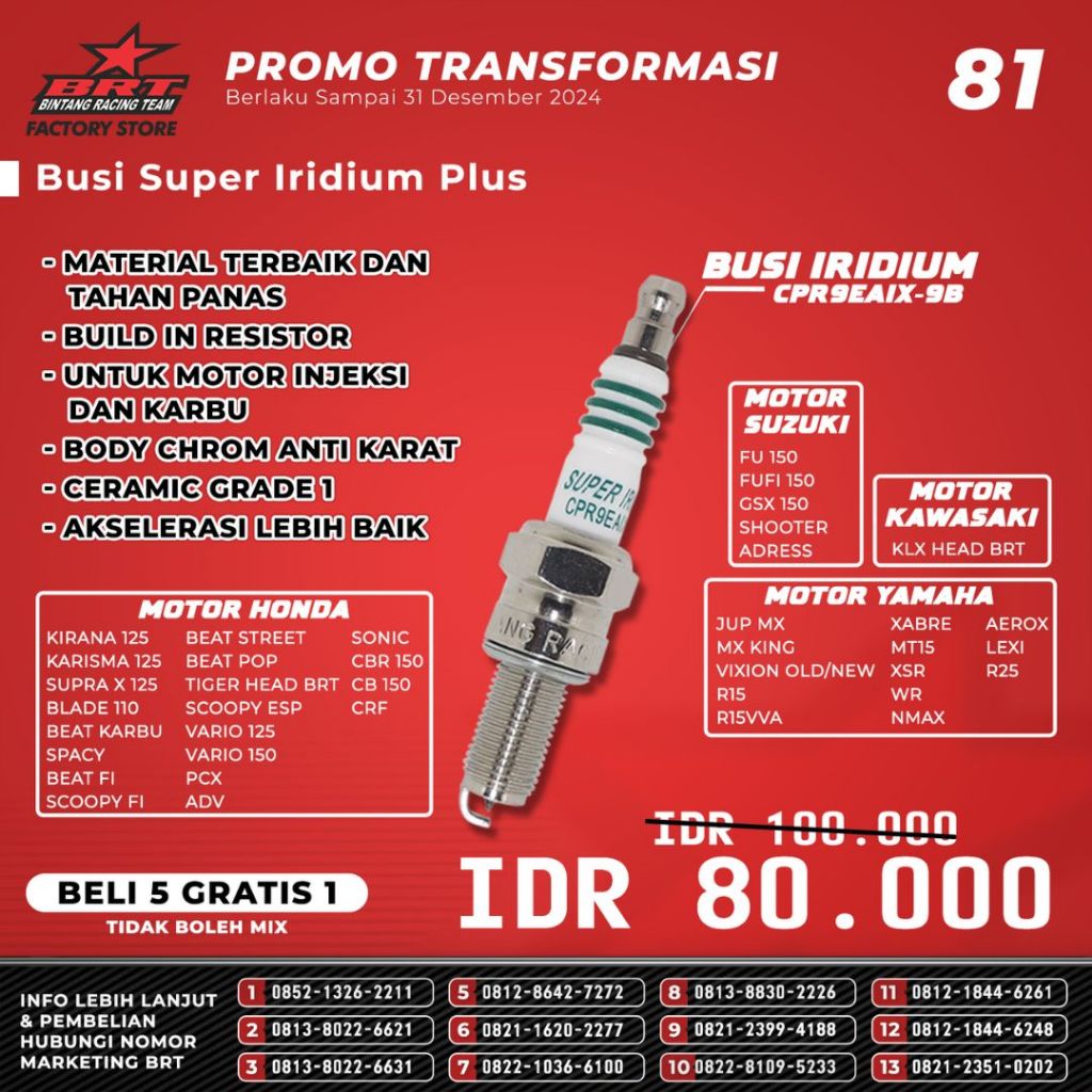 BUSI BRT SUPER IRIDIUM MOTOR YAMAHA JUP MX MX KING VIXION OL/NEW R15 R15VVA XABRE MT15 XSR WR NMAX AEROX LEXI R25