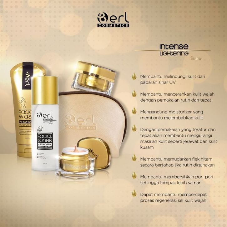 BERL COSMETICS INTENSE LIGHTENING SERIES / PAKET PERAWATAN WAJAH /PAKET SET KECANTIKAN FREE POUCH