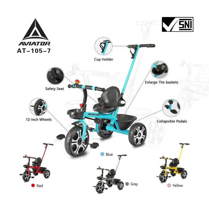Sepeda Anak Roda Tiga Aviator AT 105-7 Dorongan Bel Keranjang AT105-7 Tricycle Pasific