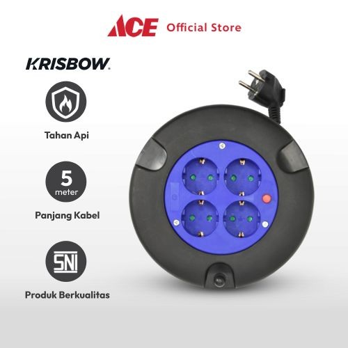ACE KRISBOW 5 MTR KABEL ROLL KF BG CABLE REEL TERMINAL COLOKAN LISTRIK PERALATAN ELEKTRONIK