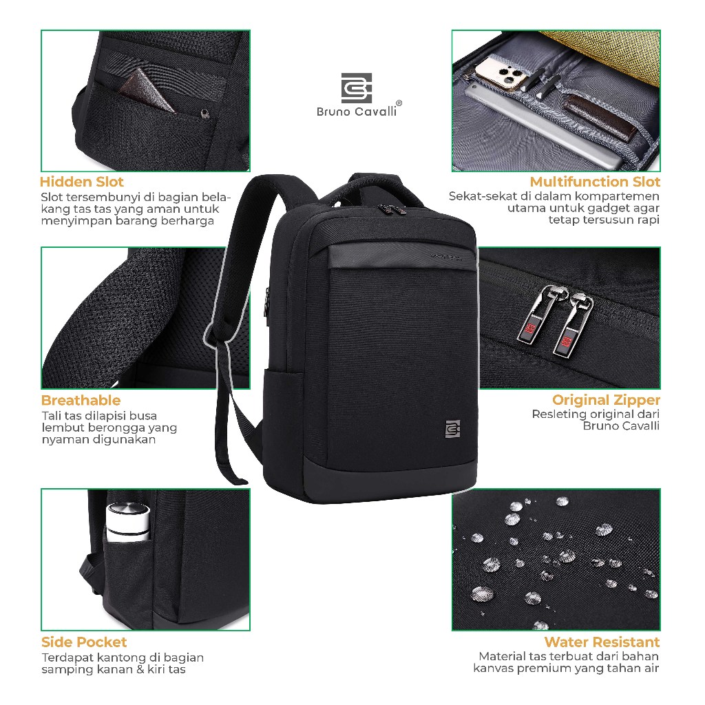 BRUNO CAVALLI SEFTON S 17147 TAS RANSEL LAPTOP ANTI AIR GRATIS RAIN COVER