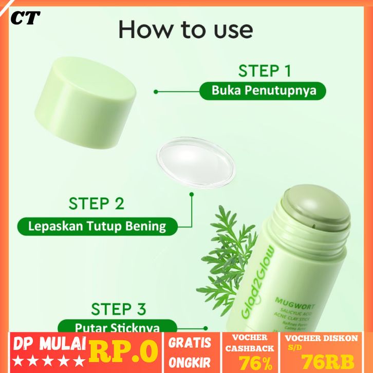 Glad2Glow 2PCS Skincare Pake Blueberry Moisturizer Cream 5x Ceramide Skin Barrier 30g + Mugwort Clay Mask