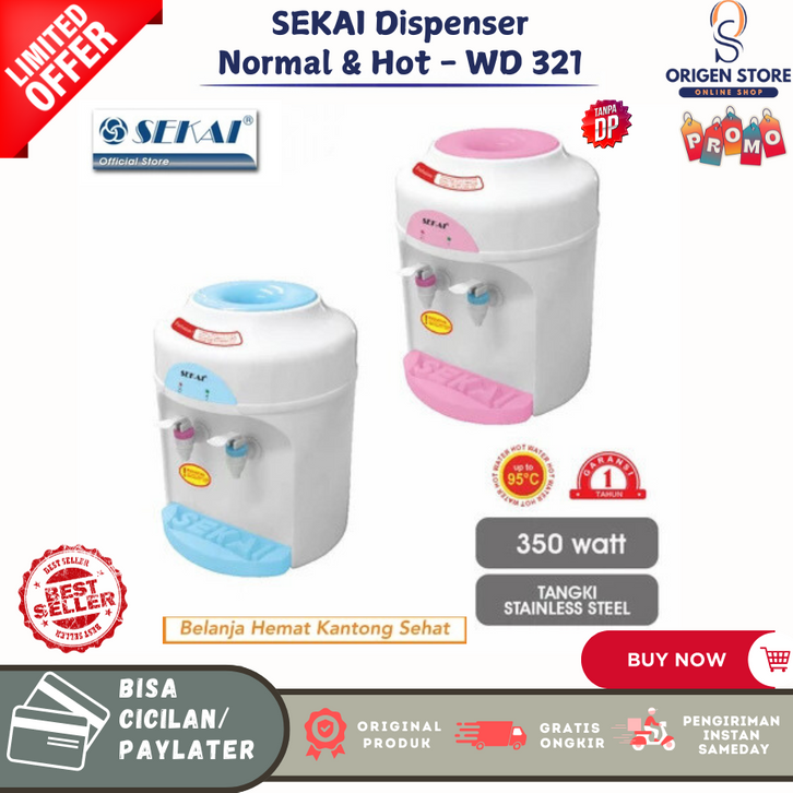 FREE ONGKIR SEKAI Dispenser Galon Air Minum Normal & Hot - WD 321