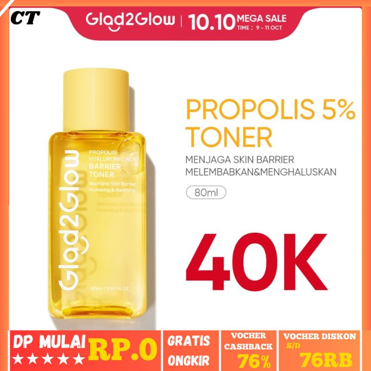 Glad2Glow Propolis Hyaluronic Acid Toner Wajah 40ml/80ml Barrier Essence | Toner Pelembab Facial Toner