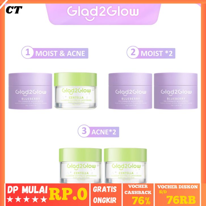 [Mall] Glad2glow 2PCS Moisturizer Cream Paket Skincare Set Blueberry Centella Allantoin Soothing Moisturizer Gel