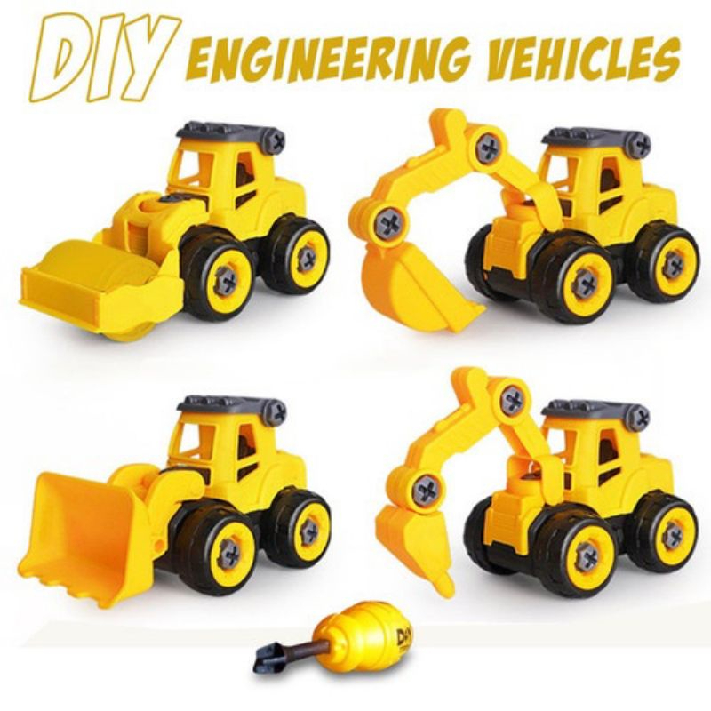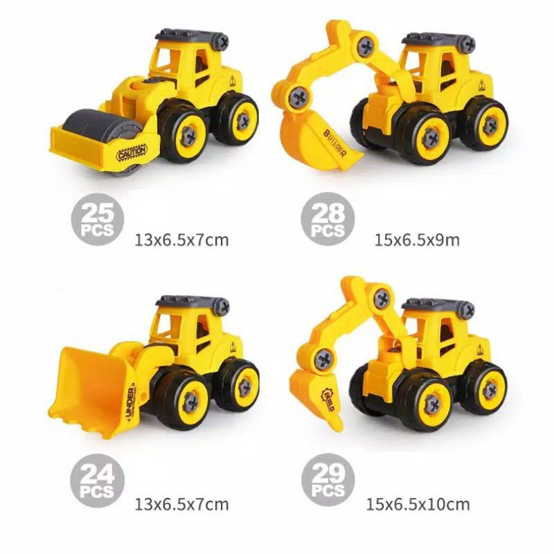 4in1+obeng diy truk engineering construction truck mainan anak laki laki excavator