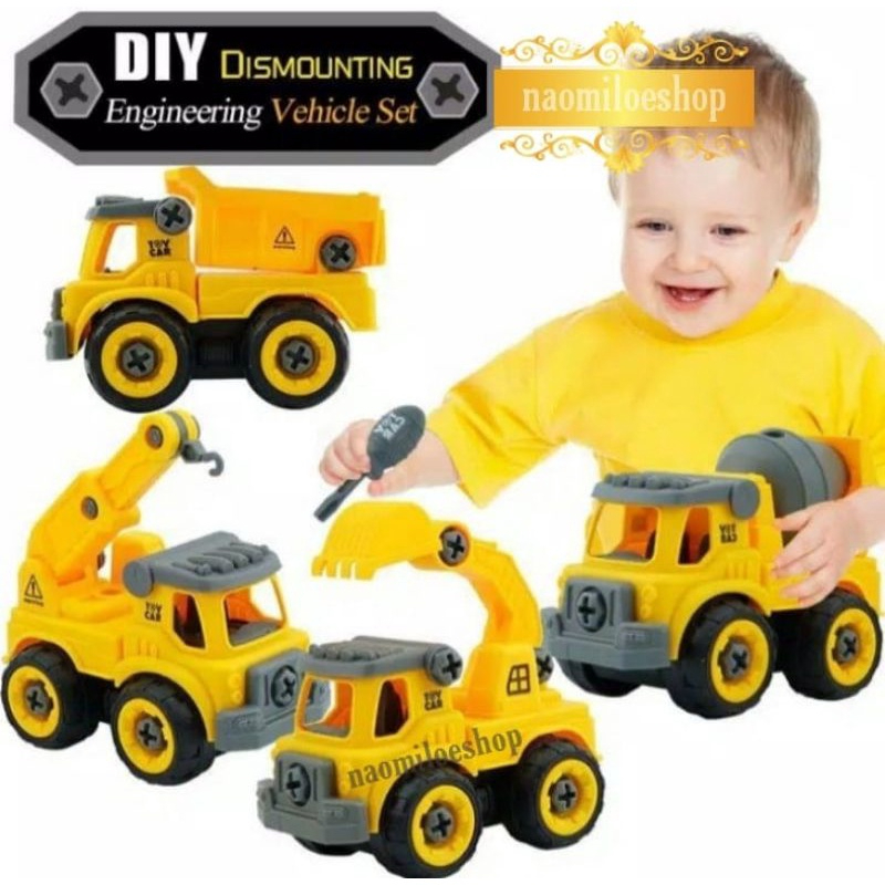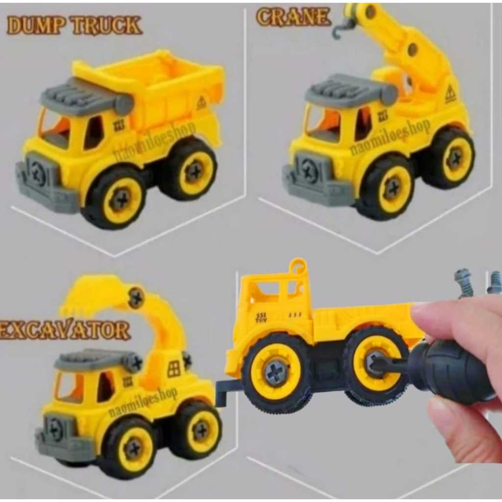 bongkar pasang Mainan Anak DIY Assemble Truck Car Mobil Truk Rakit Konstruksi merangkai truk