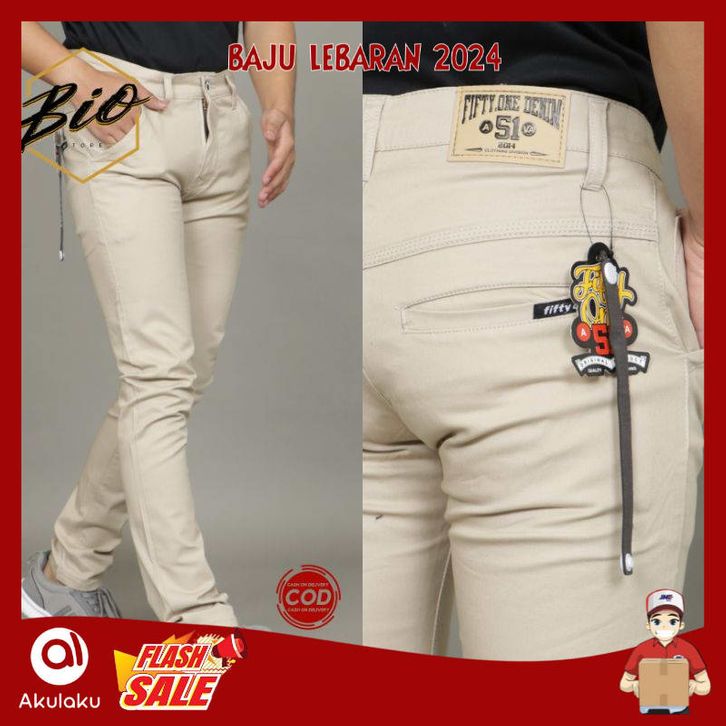 Celana Chino Pria FIFFTY ONE DENIM Celana Chino Slimfit Celana Chino Premium