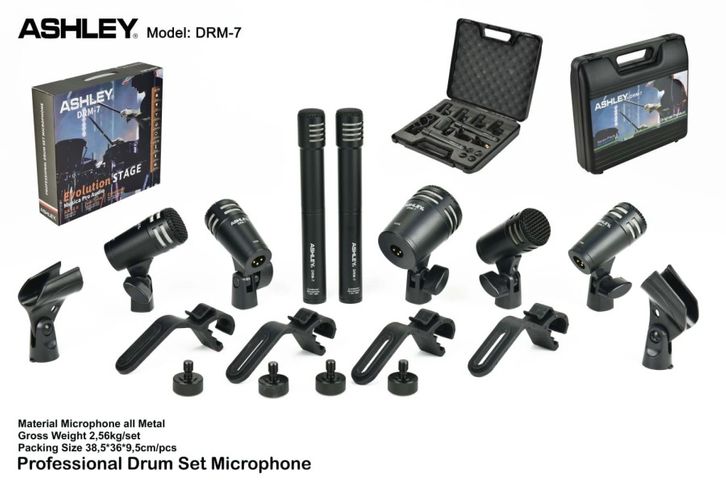 Mic Drum 7 Set ASHLEY DRM7 Box Koper Mikropon Drum Mikrofon Musik