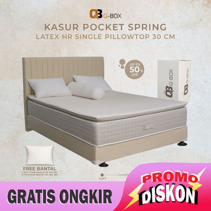 FREE ONGKIR OSAKA - Q BOX KASUR POCKET SPRING LATEX HR SINGLE PILLOWTOP 30CM
