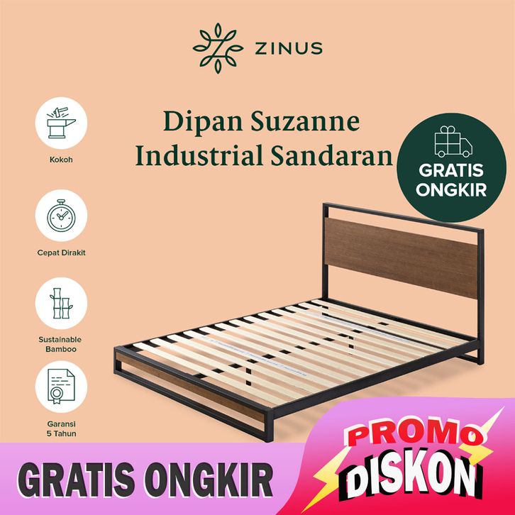 FREE ONGKIR DIPAN TEMPAT TIDUR MINIMALIS ZINUS SUZANNE SANDARAN RANJANG BESI DAN KAYU BED IN A BOX