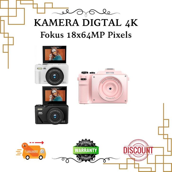 TEEKA 64GB 18X 75MP Kamera Digital 4K Vlogging Dengan Dukungan Selfie Koneksi WIFI