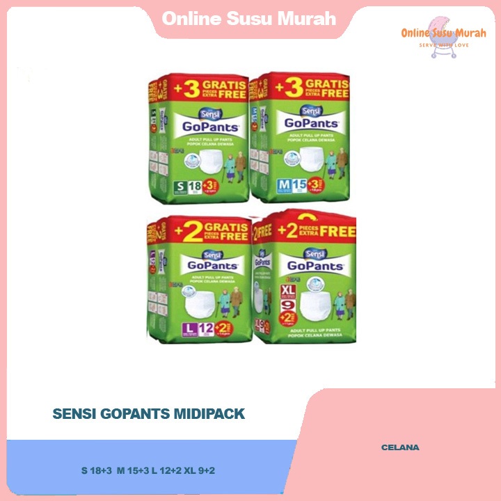 SENSI GO PANTS MIDIPACK S18+3 M15+3 L12+2 XL9+2 GOPANTS S 18 M 15 L 12 XL 9