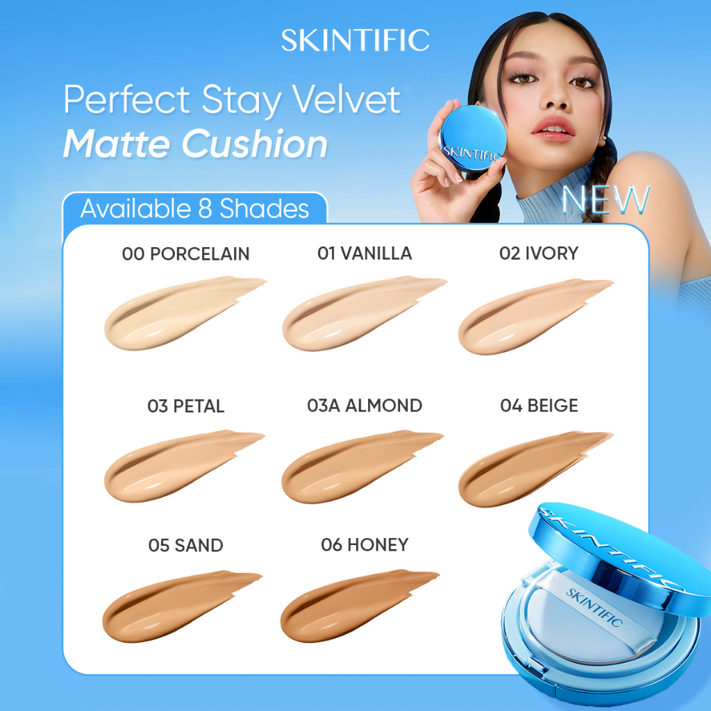 SKINTIFIC - Perfect Stay Velvet Matte Cushion 11ml Oil Control 6 Shades Waterproof Sweatproof Matte Finish Poreless Cushion Foundation Flawless BB Cream CC Cushion Makeup