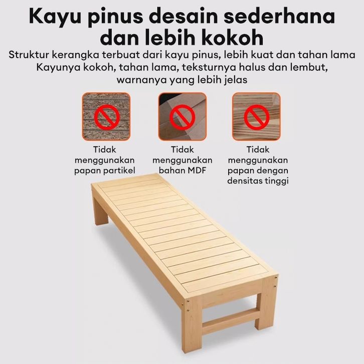 Divan 【Ekstra pelebaran】Tempat Tidur Kayu Solid Melebar Dipan Tempat Tidur Kayu Dipan Teruntai Minimalis Tempat tidur