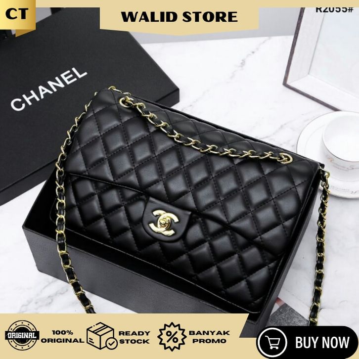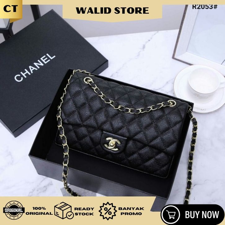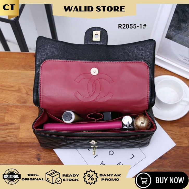 Chanel Bag TAS CHAN3L MAXI CLASSIC BAG BOX IN FAUX LAMBSKIN CAVIAR LEATHER PLATINUM 1 1 CB 5127 Tas Chanel