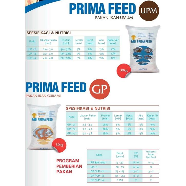 PROMO PRIMA FEED LP1 1 SAK Karung 20 Kg Pelet Pakan LP 1 Ikan Gurami, Patin, Nila, Mas, Mujaer, Bandeng, Lele MS PF Pre