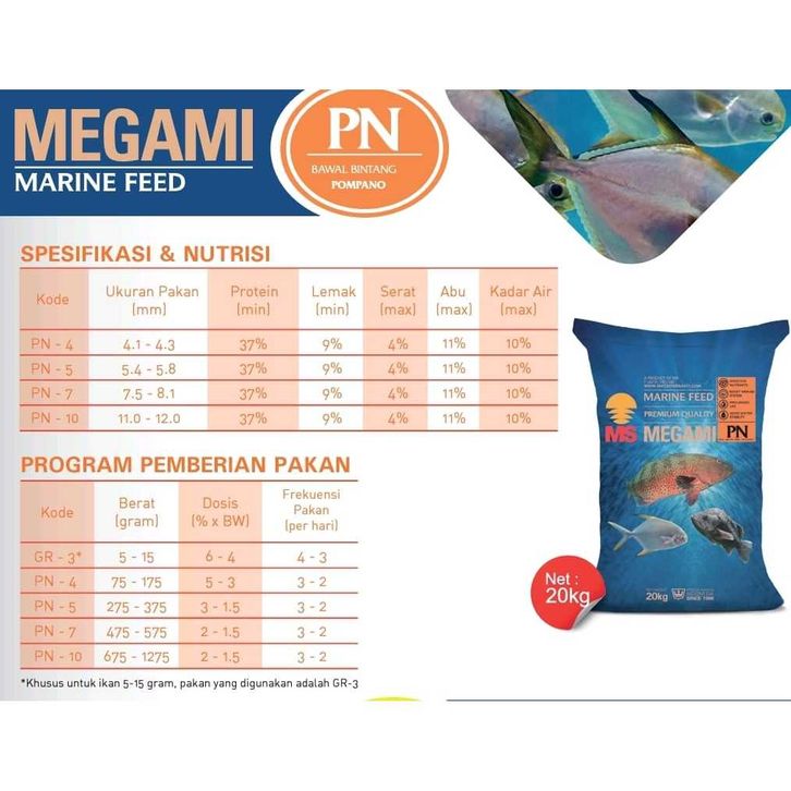 MEGAMI9r PN SB Repack 1 Kg Pelet Pakan Kerapu Kakap Koi Hias 9oldfish Tinggi Protein Bawal Bintang Ikan Laut Marine Fee