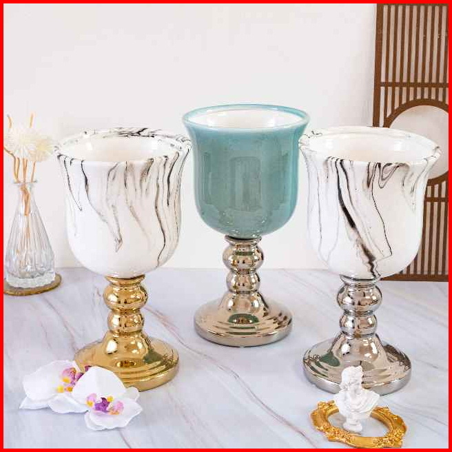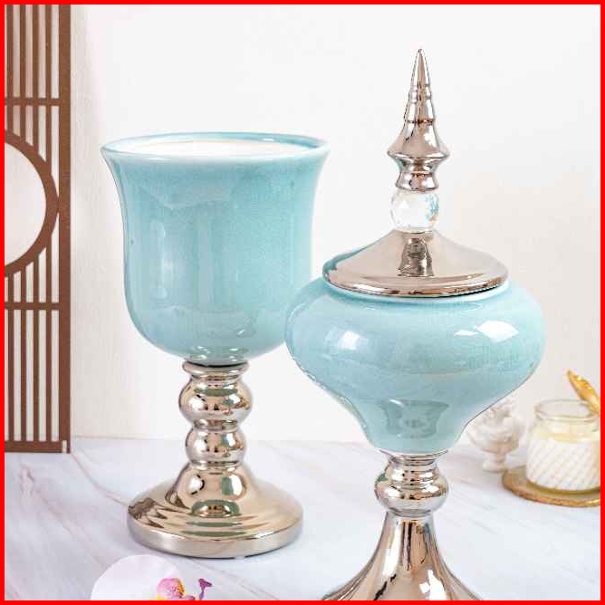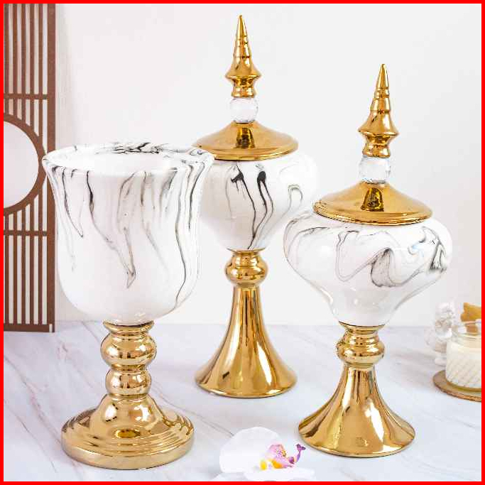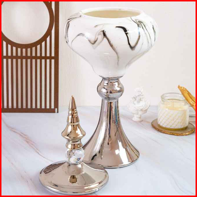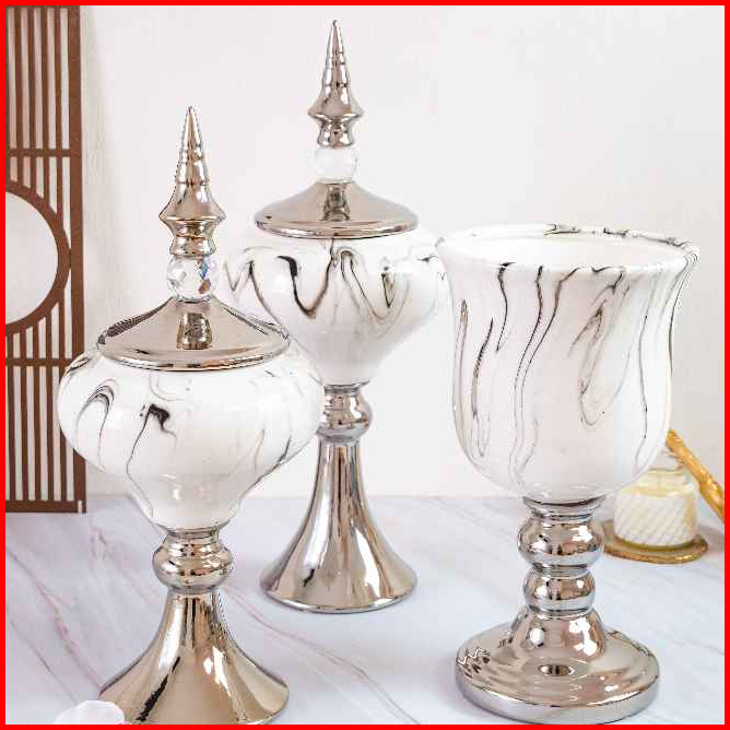 Pajangan Storage Putih Biru Tower Marble Organizer Multi Fungsi Dekorasi Ruangan Dekorasi Modern Vas Guci