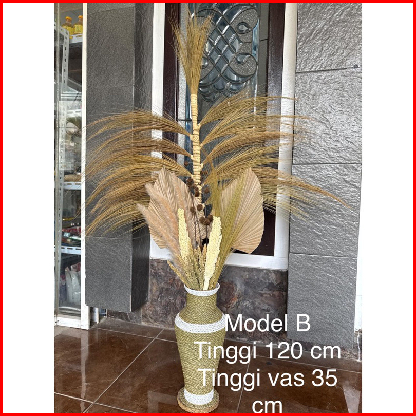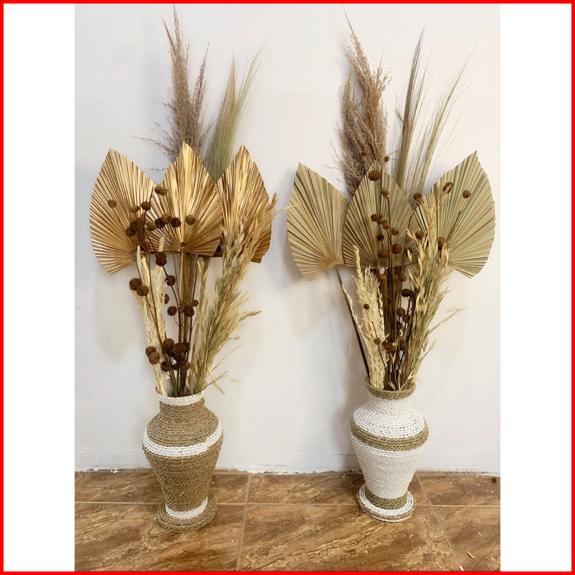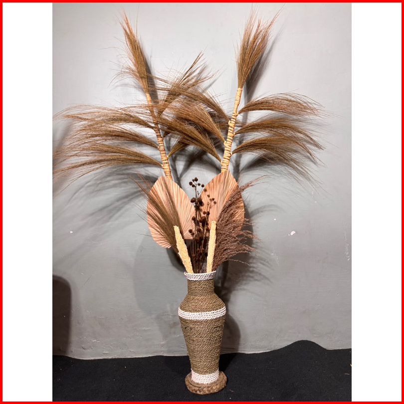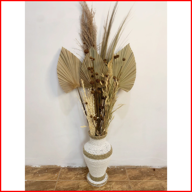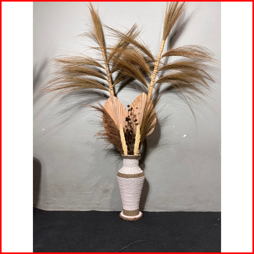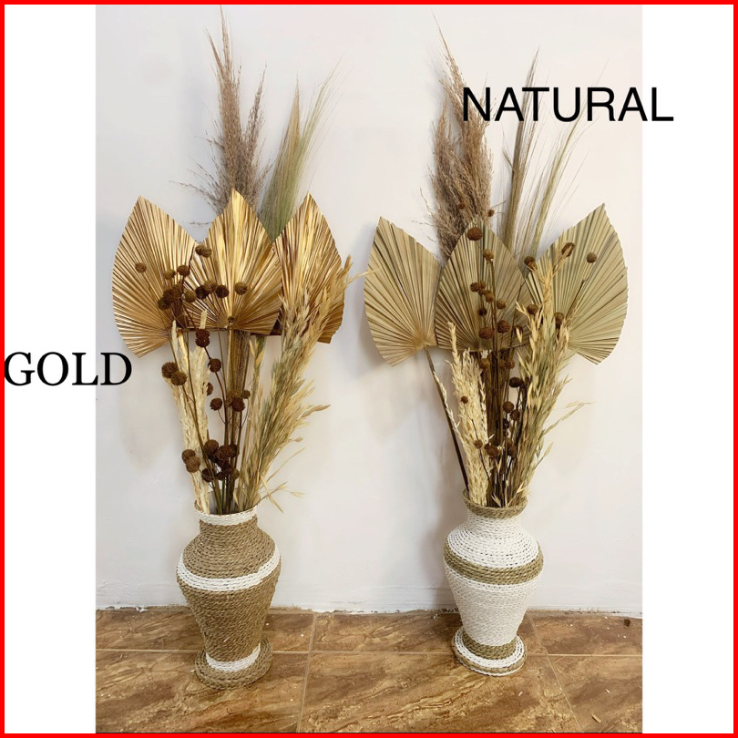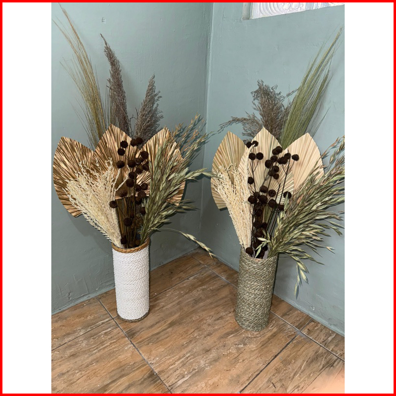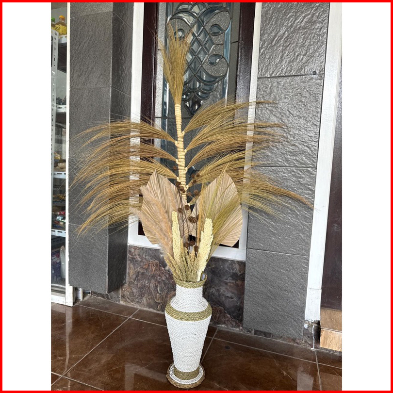 Paket Dekorasi Bunga Kering Palem Ukuran 15cm Dan Vas 30cm Hiasan Meja Mini