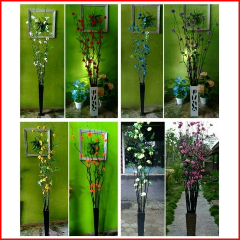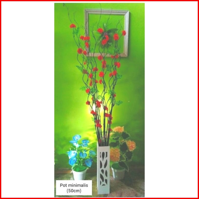 Bambu Ulir Anyelir Paket Pot Bunga Hias Artificial Imitasi Palsu Plastik