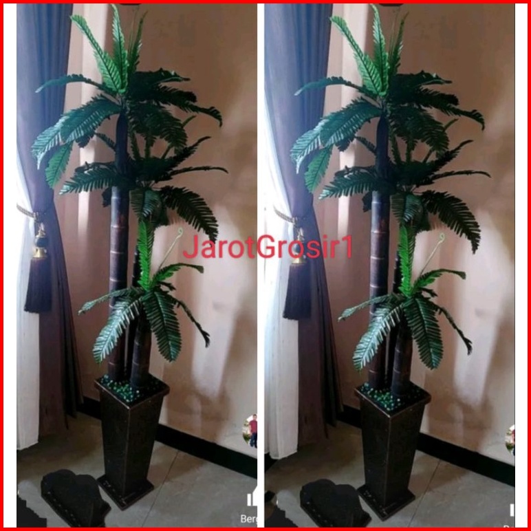 Palm Isi 3 Pohon Pot Dan Batu Bunga Plastik Palm Hias Artificial Dekorasi Sudut Ruangan Tanaman Pajangan Imitasi Ornamen