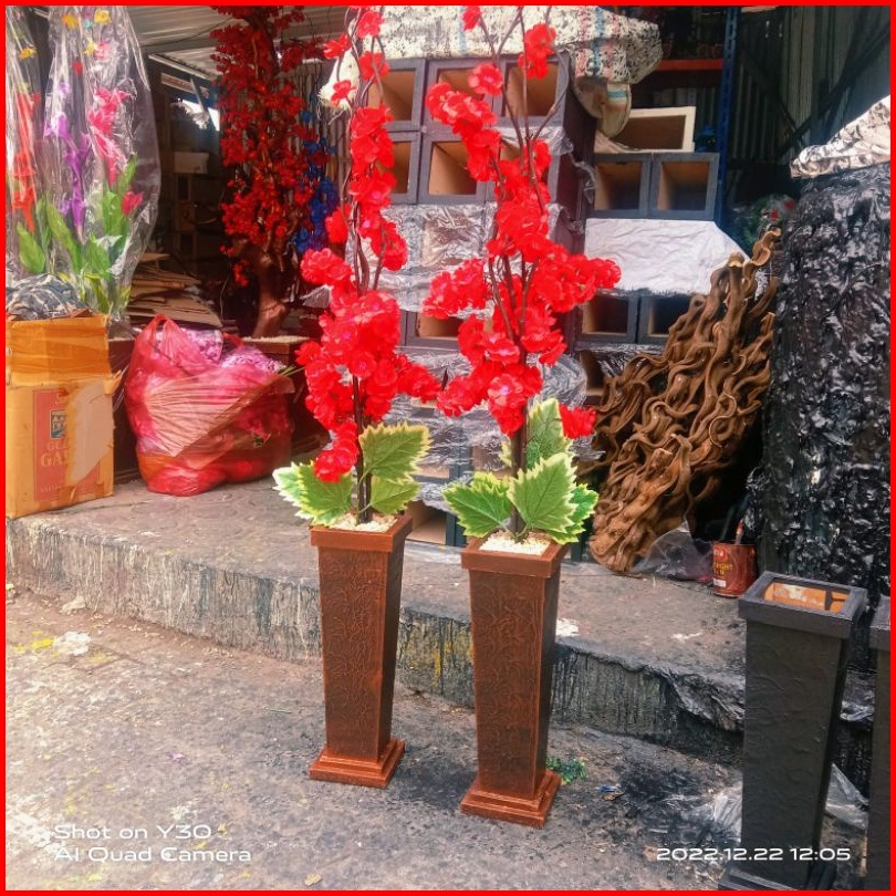 Bunga Hias Sakura Blosom Vas Dan Batu Tinggi 150cm Sakura Lokal Ulir Lengkap Pot Bebatuan Bunga Hias Artificial Dekorasi