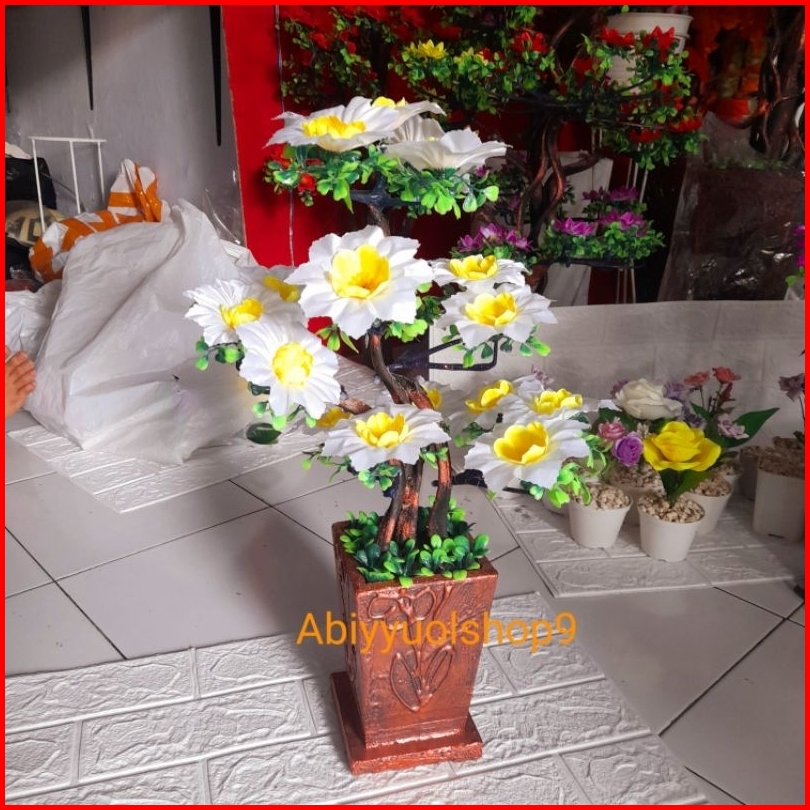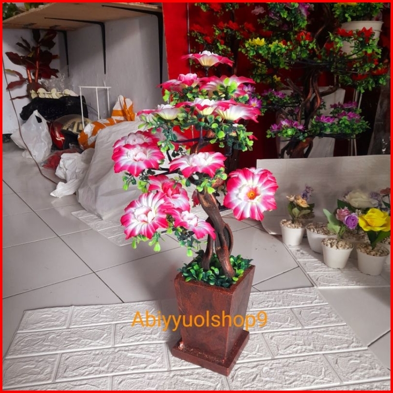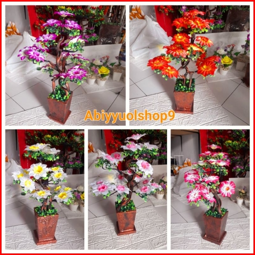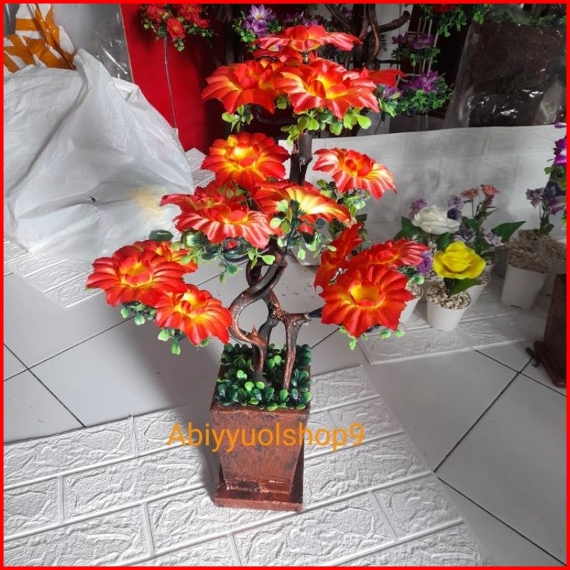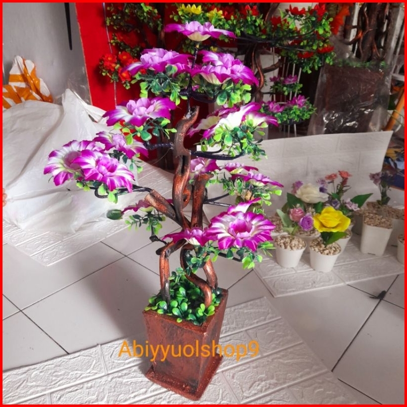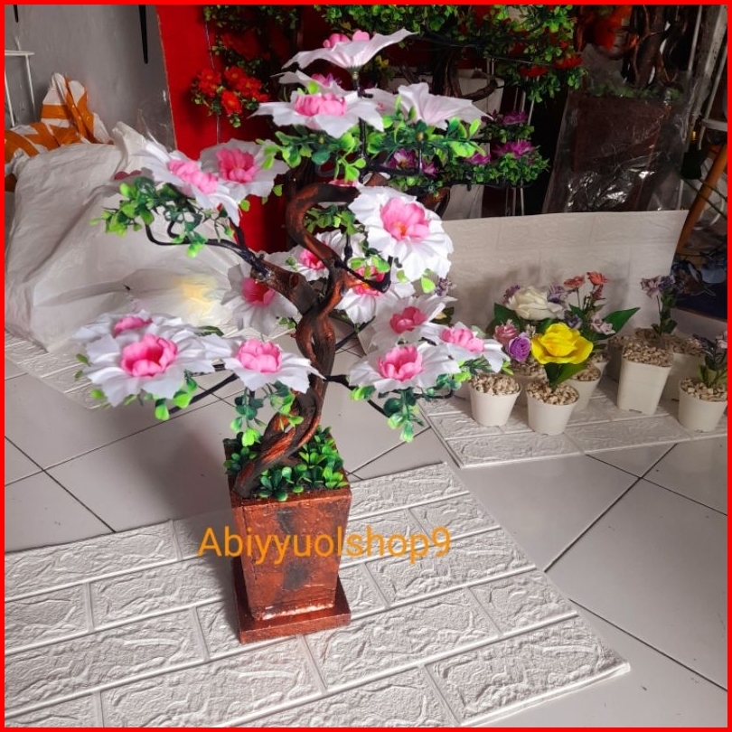 Bunga Hias Bonsai Tinggi 55cm Rangkaian Bonsai Bunga Hias Dekorasi Ruangan Bunga Hias Artificial Bunga Sudut Bunga Palsu